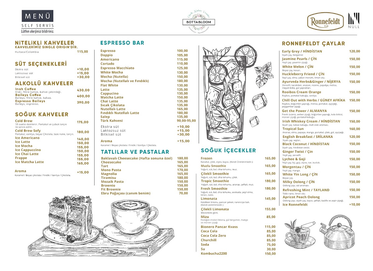 Botta Bloom offers a thoughtfully curated menu that blends the warmth of a neighborhood café with the charm of a florist shop. You’ll find a selection of comforting drinks, from rich espressos and traditional Türk Kahvesi to creamy White Mochas and refreshing Limonata, perfect for a quiet moment or a casual catch-up with friends.